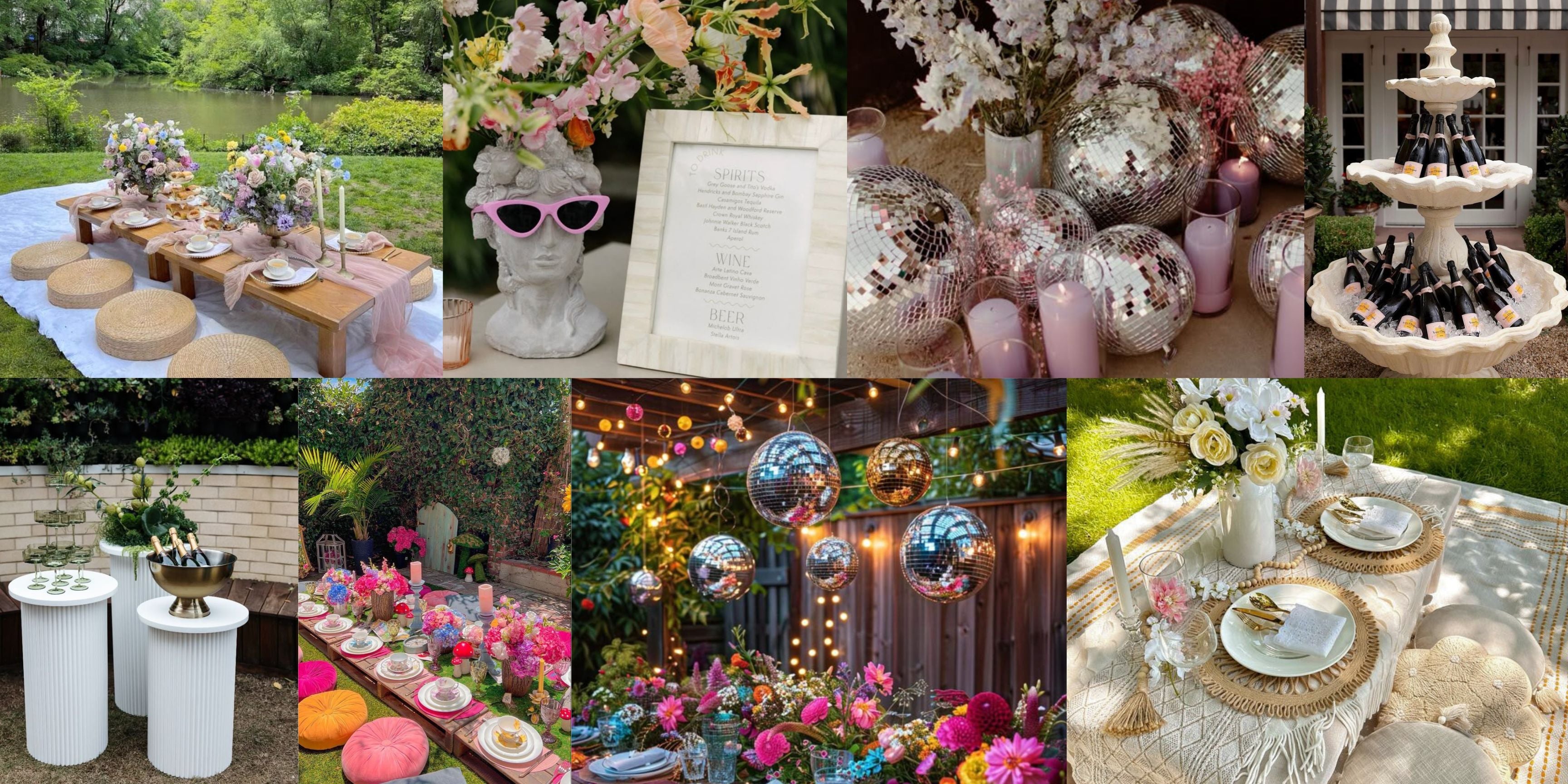 The perfect addition to any party is a disco ball. You can choose from a range of sizes or choose them all! See our disco ball decor inspiration here.
